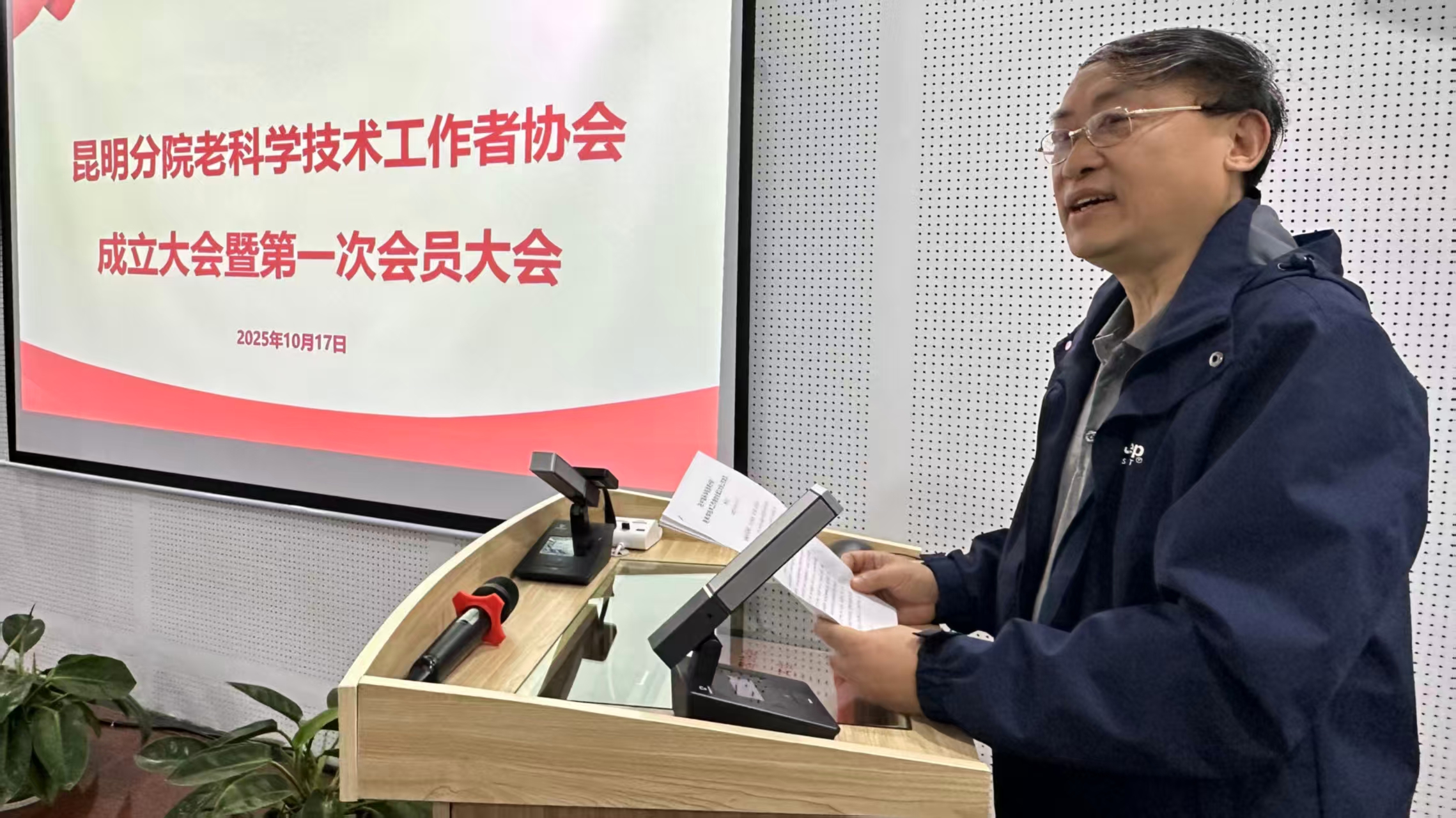 为用好用活银发科技人才资源,支持和鼓励老科技工作者发挥优势特长,服务大局,持续助力加快抢占科技制高点,10月17日,在院离退休干部工作局、院老科技工作者协会、昆明分院分党组的支持和指导下,昆明分院老科技工作者协会(以下简称分院老科协)成立大会暨第一次会员大会在昆明举行。来自昆明分院系统单位的45名老科技工作者代表齐聚一堂,共同见证了这一重要时刻。院老科技工作者协会副理事长、院离退休干部工作局原副局长曹以玉出席大会并致辞。昆明分院分党组副书记周亚玲,昆明植物所党委副书记、纪委书记廖雷青及系统相关部门负责人、工作人员参加大会。