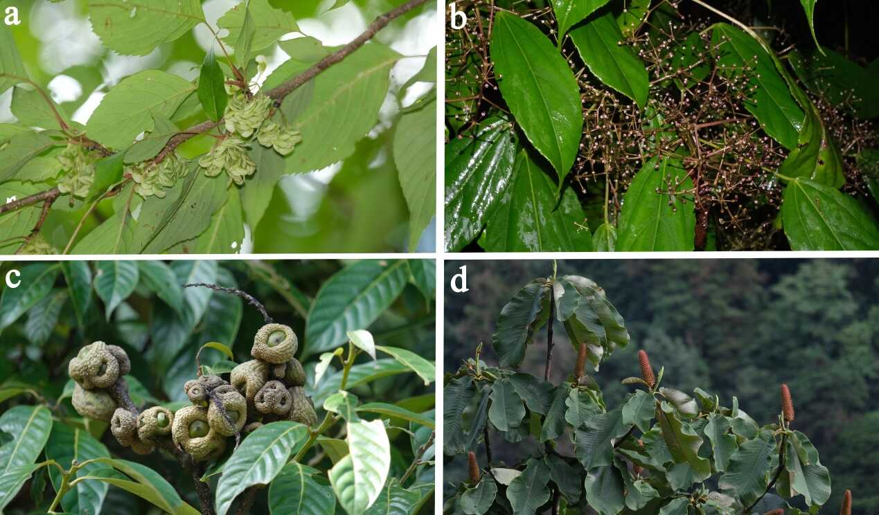 a 领春木Euptelea pleiosperma; b 长梗常春木Merrilliopanax membranifolius; c 多变柯Lithocarpus variolosus; d 长喙厚朴Houpoea rostrate