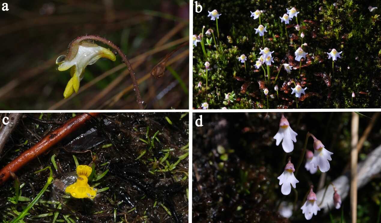 a 高山捕虫堇Pinguicula alpine; b 毛籽挖耳草Utricularia kumaonensis; c 李恒挖耳草Utricularia lihengiae; d 怒江挖耳草Utricularia salwinensis