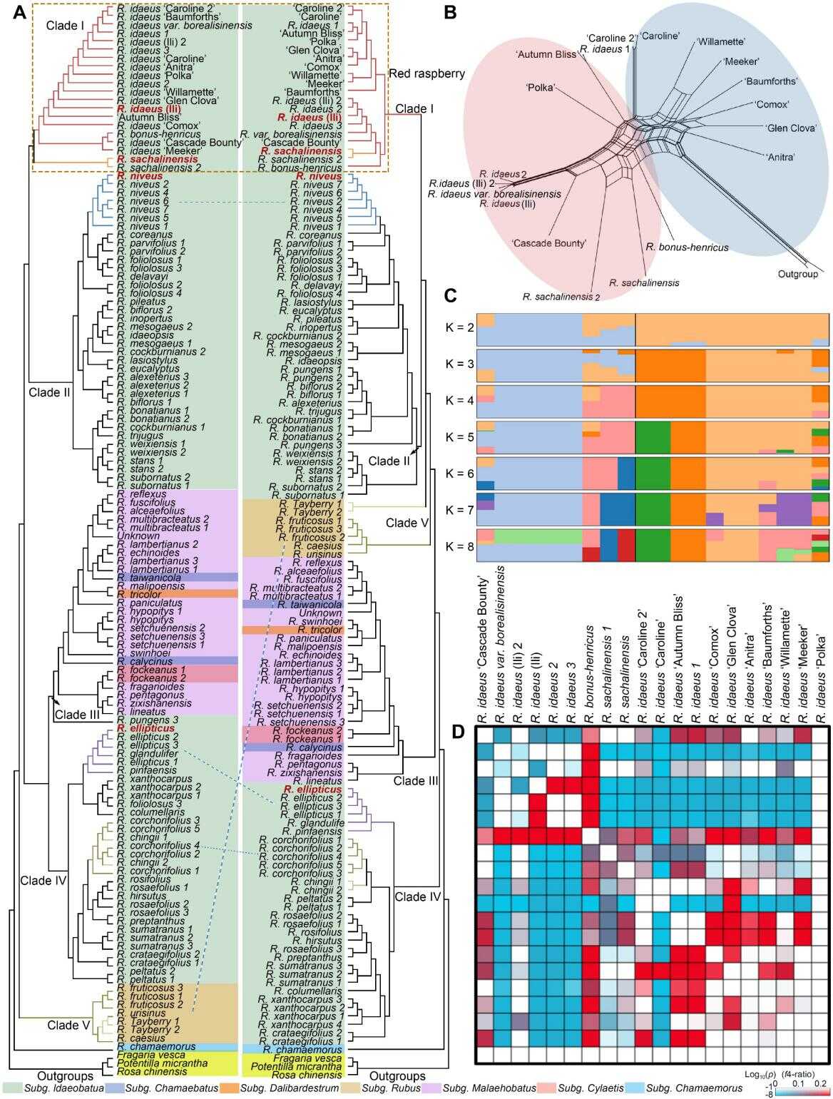 图2 悬钩子属植物系统发育关系与遗传渐渗分析