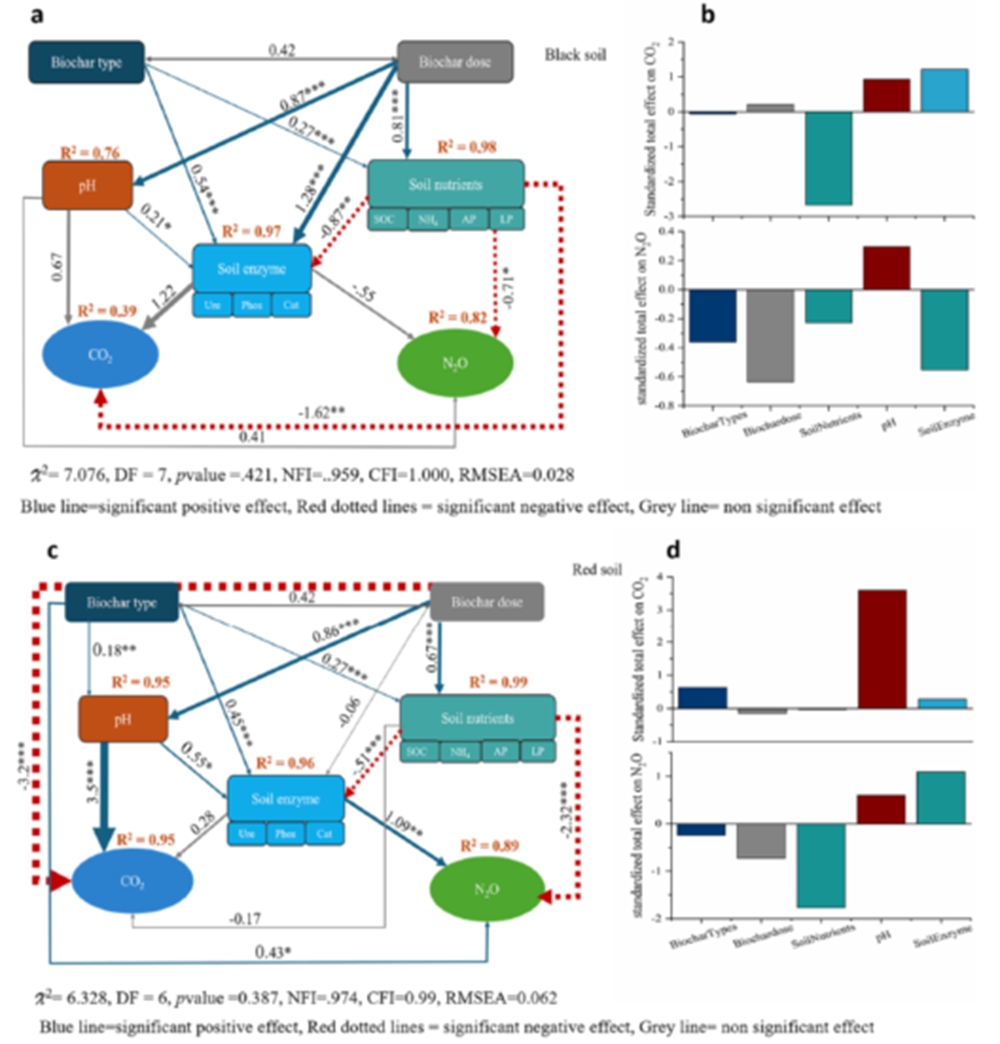 图1. 生物炭修复下的退化土壤磷组分与温室气体排放