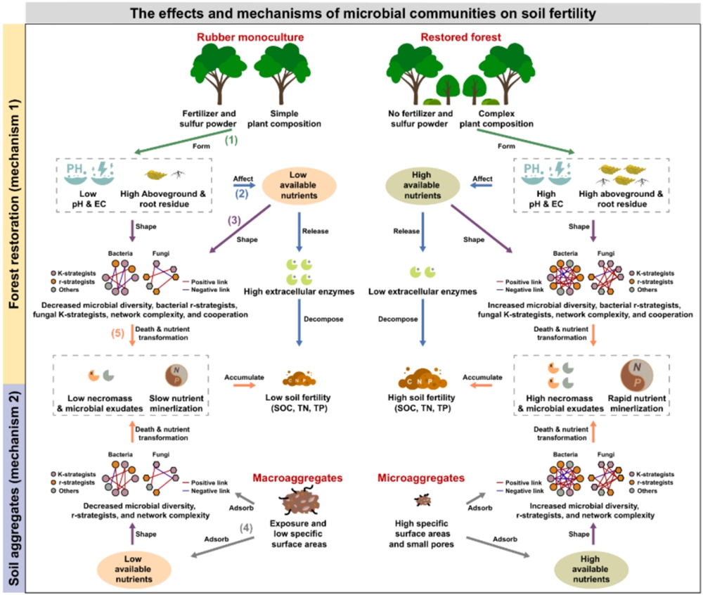 橡胶林生态恢复过程中微生物驱动的土壤肥力提升