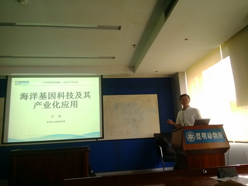 7月17日下午,受遗传资源与进化国家重点实验室系统进化与生物地理学组杨君兴研究员的邀请,深圳华大基因研究院海洋平台负责人石琼教授访问中科院昆明动物研究所,并作了题为“海洋基因科技及其产业化应用”的学术报告。 石琼教授首先介绍了海洋生物资源在全球的重要作用和对国家的战略意义,通过生物科技在海洋资源上的运用能为海洋资源科学合理持续开发提供重要的保障。其次,石教授对其研究团队及所在的深圳华大基因研究院近几年来开展的海洋基因科技和产业化应用的具体项目进行了介绍。如石斑鱼项目、弹涂鱼项目、芋螺项目、大黄鱼项目等。其中有些项目已经在国际重要的科学杂志如Science、Nature系列上发表,另外有一些项目正在逐步进行当中。石教授在通过基因科技辅助的分子育种方面也取得了重要进展,如鉴定出与石斑鱼生长密切相关的一些分子标记等,并在其养殖基地对石斑鱼产业化进行了探索和实践。 报告结束后,与会人员对感兴趣的问题进行了提问和探讨,并与赖仞研究员、施鹏研究员、马占山研究员、杨君兴研究员等就有关合作问题交换了意见,取得了一些合作意向和进展。