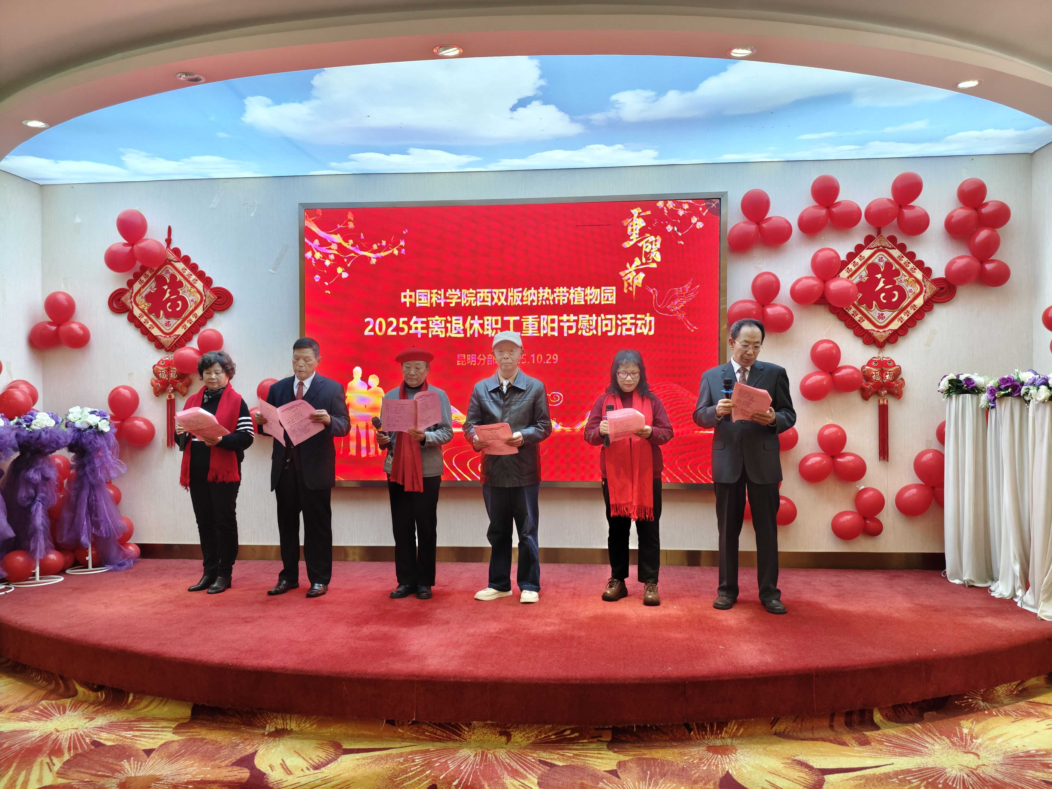 10月29日,中国科学院西双版纳热带植物园(以下简称“版纳植物园”)组织开展离退休职工重阳节慰问活动。园党委书记、副主任张教林,人事处处长陈志云等分别在园部和分部参加活动。