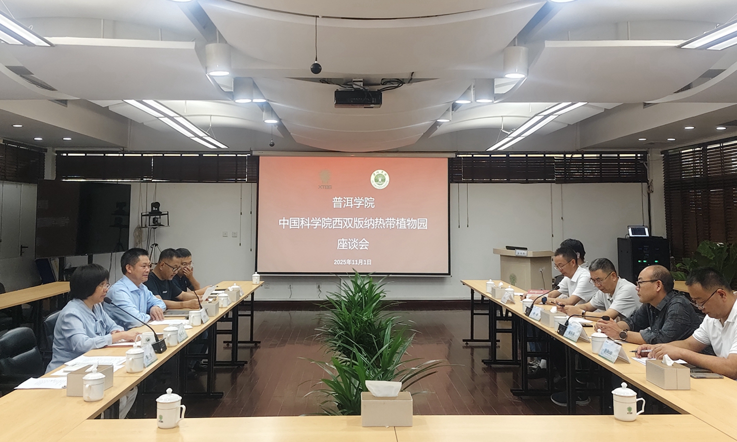 11月1日,中国科学院西双版纳热带植物园(以下简称“版纳植物园”)与普洱学院召开座谈交流会,旨在进一步加强交流合作,提升双方联合办学质量。普洱学院院长杨斌,版纳植物园党委书记、副主任张教林出席会议。