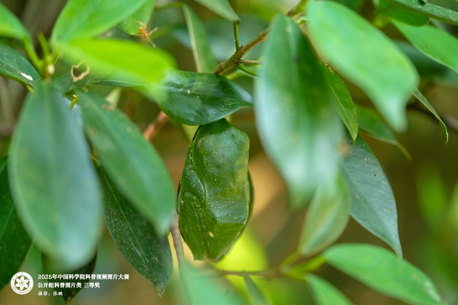 此外,科学图片《极致伪装》与《请不要打扰》分获公开组科学图片类三等奖和优秀奖。两幅作品均借助微距摄影,捕捉自然界中生物的拟态行为,画面兼具审美意趣与科普价值。版纳植物园内拥有众多具拟态特征的生物,这类影像成果常被用于面向公众及中小学生的科普教育,充分体现了环境教育工作者通过影像传递科学、启迪公众的职责与意义。