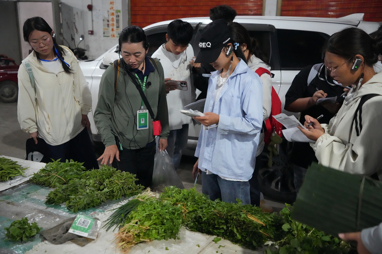系列活动以“让我们成为酷吃货和酷播客”为行动目标,围绕“出发、觉醒、联结、实践、创作”五大主题逐步展开,融合版纳植物园野生蔬菜园探索、傣族村寨庭院访谈、勐仑菜市场调查、烹饪体验与科普视频创作,引导大学生们在多元场景中理解本地食用植物与当地人、热带雨林之间的深度联系,通过深入学习相关技能,践行可持续饮食与传播行为。