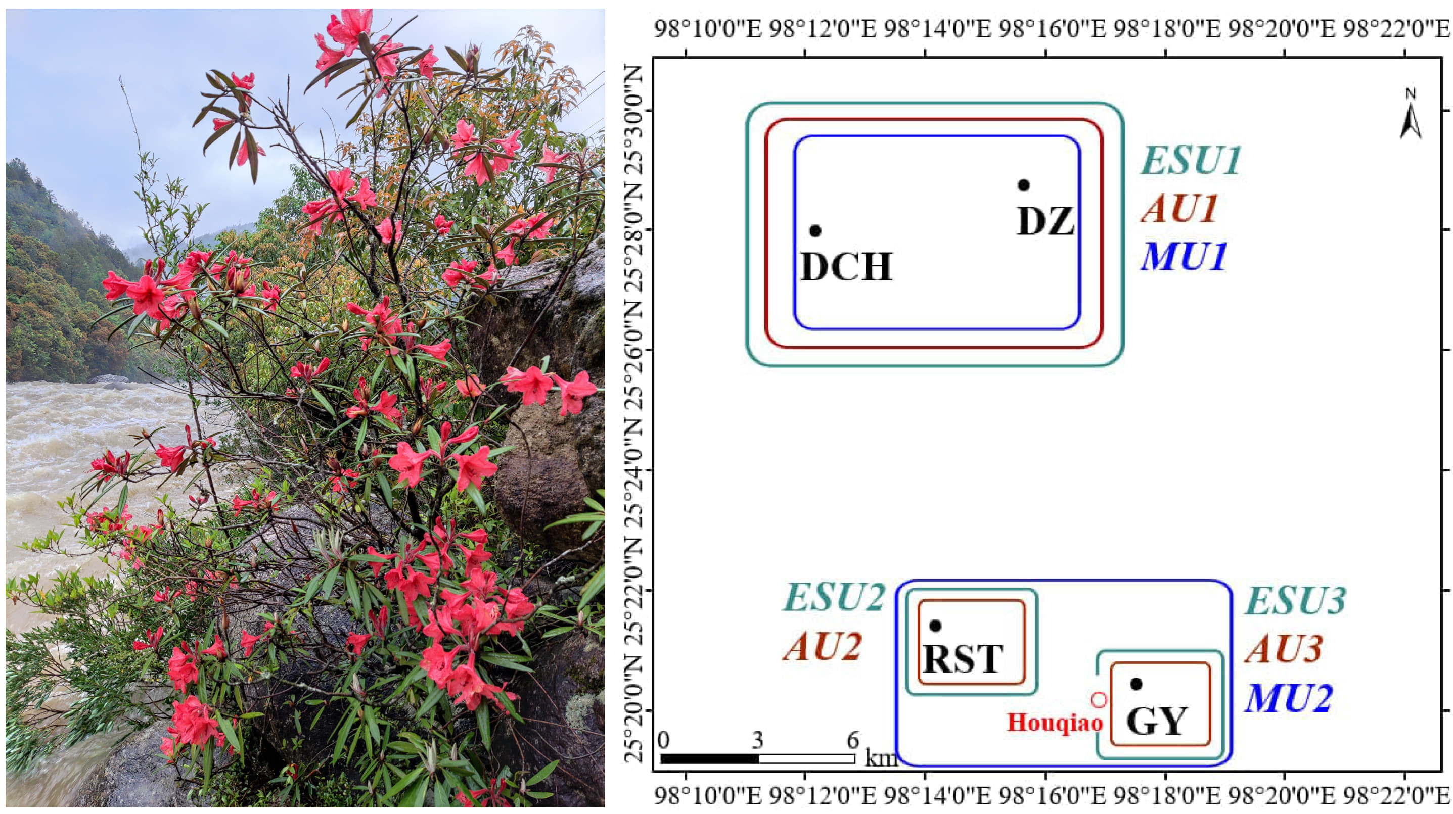 DCH,大岔河;DZ,胆扎;RST,热水塘;GY,古永;ESU,进化显著单元;AU,适应单元;MU,管理单元